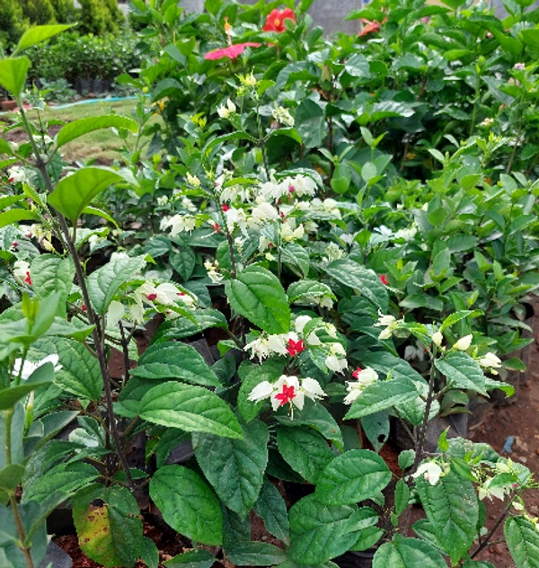 Also known as glorybower or tropical bleeding heart, Clerodendrum bleeding heart (Clerodendrum thomsoniae) is a sub-tropical vine that wraps its tendrils around a trellis or other support. Gardeners appreciate the plant for its shiny green foliage and dazzling crimson and white blooms.