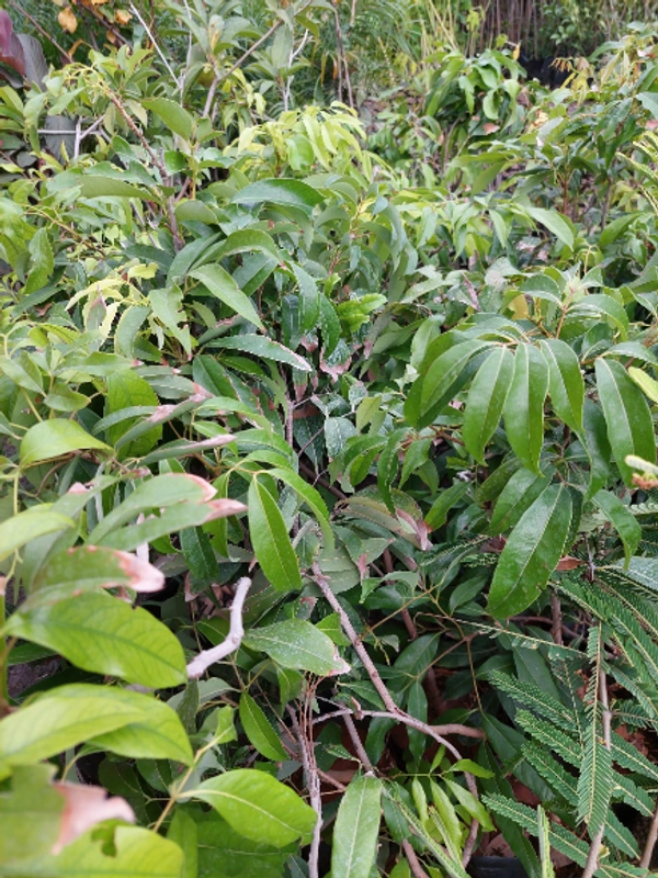 A tall evergreen tree, the lychee bears small fleshy fruits. The outside of the fruit is pink-red, roughly textured, and inedible, covering sweet flesh eaten in many different dessert dishes.