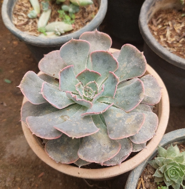 Lakshmi Kamal has a rosette of fleshy, grey-green leaves that have pointy maroon tips. The plant also gives colourful flowers once it is full-grown. It is native to Mexico, where it originally grew on shady rocks, and now it is famous worldwide for its stylish looks and ease of care!